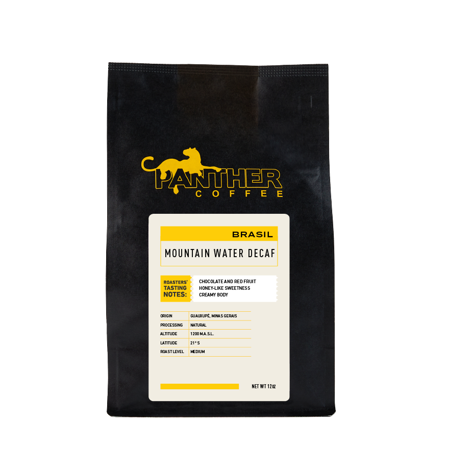 If you love the creamy. chocolatey allure of Brazilian coffee but hate the jitters. look no further! Panther’s decaf has a distinct cherry-and-plum note thanks to its natural process method. and the medium roast degree enhances its honey-like sweetness. Indulge in a cup of guiltless coffee when the sun is rising or long after it’s set.
